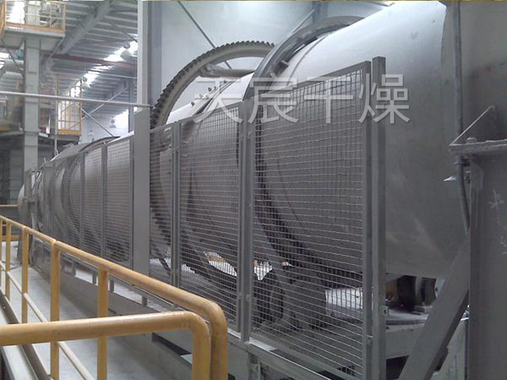 濕物料從干燥機一端投入后,在內(nèi)筒均布的抄板器翻動下,物料在干燥器內(nèi)均勻分布與分散,并與并流(逆流)的熱空氣充分接觸,加快了干燥傳熱,傳至推動力。在干燥過程中,物料在帶有傾斜度的抄板和熱氣流的作用下,可調(diào)控地運動至干燥機另一段星形卸料閥排出成品。