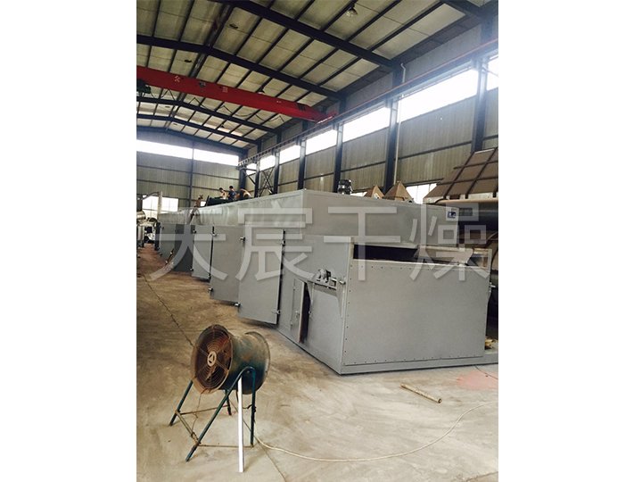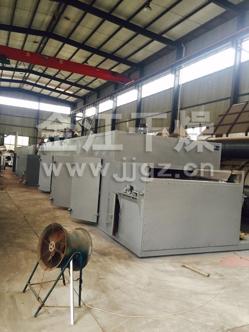 物料由加料器均勻地鋪在網(wǎng)帶上,網(wǎng)帶一般采用12-60目不銹鋼絲網(wǎng),由傳動裝置拖動在干燥機內(nèi)移動。干燥機由若干單元組成,每一單元熱風獨立循環(huán),部分尾氣由專門排濕風機排出,廢氣由調(diào)節(jié)閥控制,熱氣由下往上或由上往下穿過鋪滿物料的網(wǎng)帶完成熱量與質(zhì)量傳遞的進程,帶走物料水份。網(wǎng)帶緩慢移動,運行速度可根據(jù)物料溫度自由調(diào)節(jié),干燥后的成品連續(xù)落入收料器中。上下循環(huán)單元根據(jù)用戶需要可靈活配備,單元數(shù)量亦可根據(jù)需要選取。